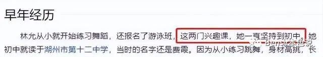 关于林允的受教育情况,用她同学的话说“背处分都背不完”,百度搜肠刮肚,选择了她上过游泳课外班和学过跳舞并坚持到初中来认真阐述。