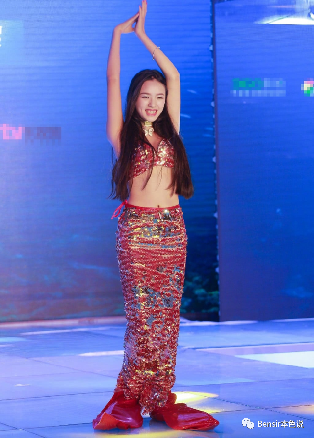 美人鱼服装走路很困难,费霞突然心生一计,她滚上了舞台。