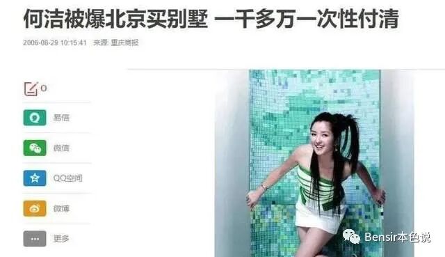 2006年8月,媒体报“何洁北京买别墅1000多万全款一次性付清”。