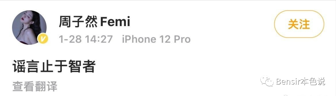 传闻中,黄晓明在追求的周子然已经发文澄清,“谣言止于智者。”