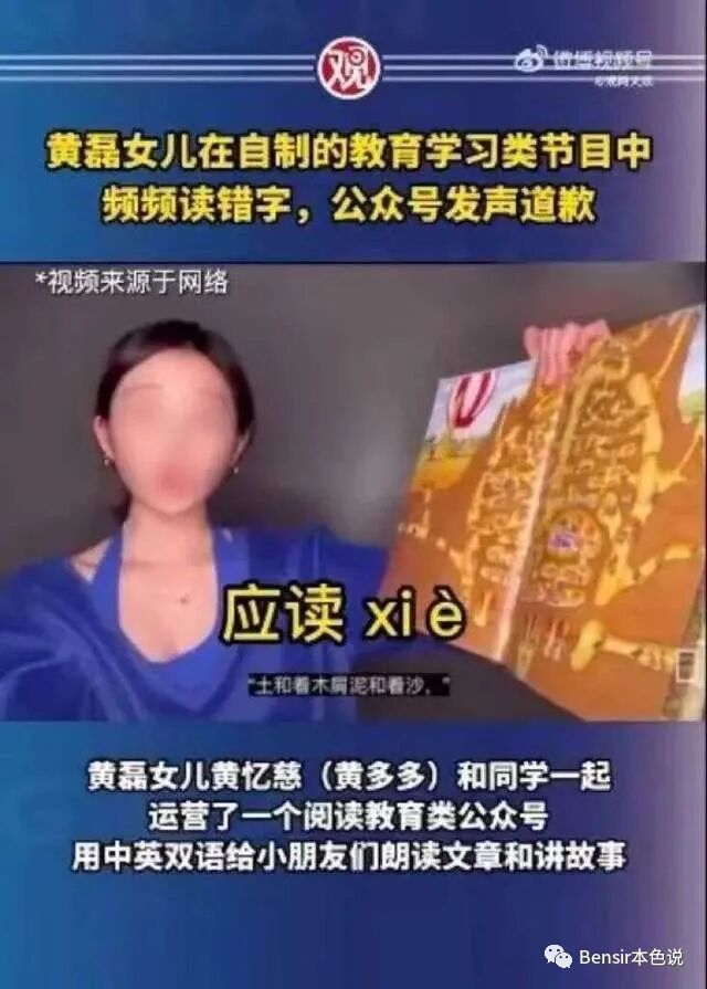 这波网暴的起因是黄多多和同学一起运营了一个阅读教育类公众号,她用中英双语给小朋友们读绘本。