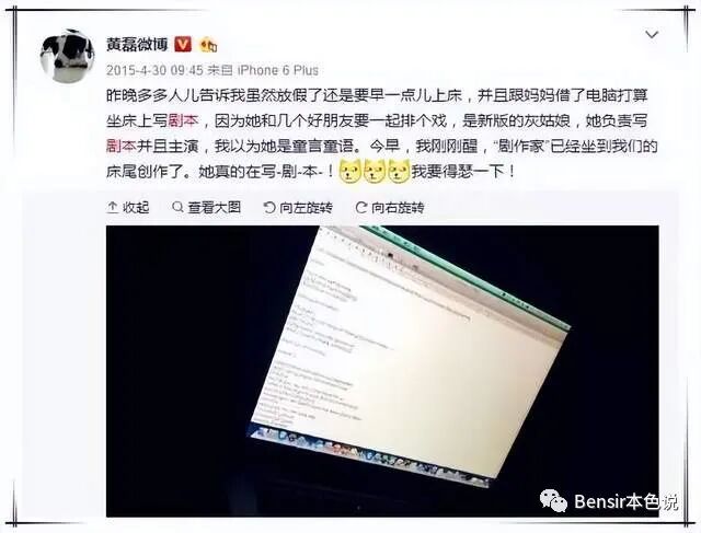 10岁,黄磊就晒出了黄多多写的英文剧本,表示“我要得瑟一下”。