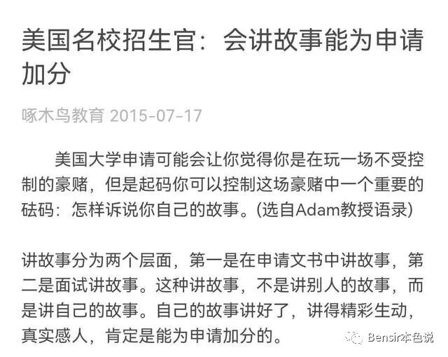 曾经有一位华裔女博主,申请名校前就在网络上录制视频,记录自己如何通过刻苦的学习从二等生逆袭的经过,申请文书里她又讲了一个新移民家庭,因为英文不好只能在底层生活及她和思想传统的母亲和解的故事。