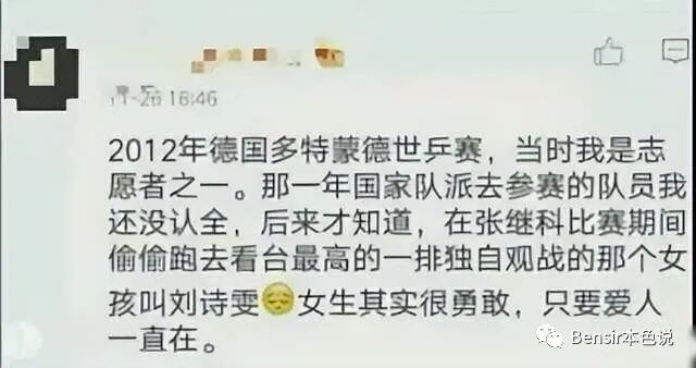 2012年奥运会前夕,张继科去德国参加比赛,刘诗雯悄悄跑去看台独自观战,然后就有了那句很经典的话,