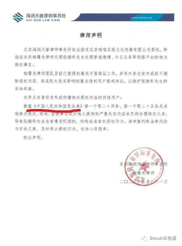 这次,张继科方依旧嘴很硬,只是他工作室发布的律师声明里,《中华XXXXX民法典》写成了《中国XXXXX民法典》,不知道哪位律师会犯这么低级的错误。