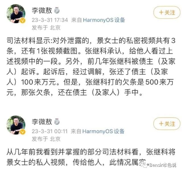 “根据我掌握的司法材料,张继科将景女士私人视频传给他人,情况属实。”