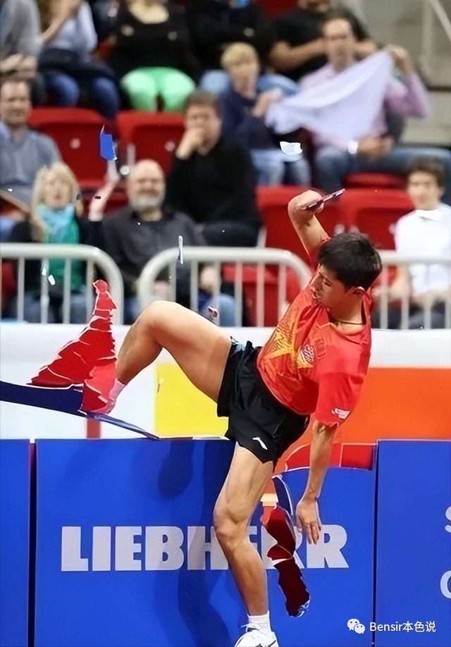 谁也想不到,获胜后的张继科冲到赛场边,狠踹赞助商的广告牌,这种违背体育精神犯了商业禁忌的行为他毫不犹豫就干了。