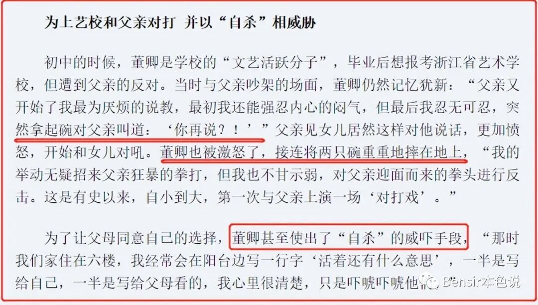 很多年以后,董卿才体会到父亲的良苦用心,当初送她去艺校时,董善祥冷着脸背着手,几乎一言不发,董卿心里对父亲充满怨恨。