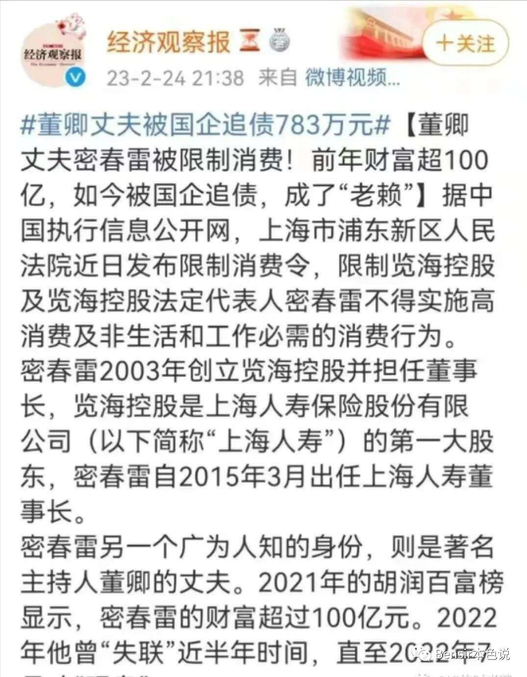 去年,密春雷突然神秘失踪半年多,董卿节目无故被停播。