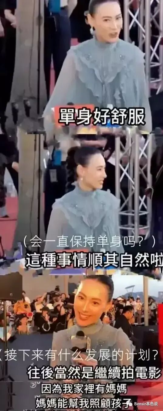 她又开始出现在娱乐圈的各大颁奖礼,记者问她感情状况,她说:
