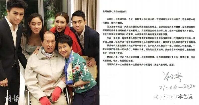 2020年初,赌王何鸿燊突然传出病危消息,四房太太及子女轮番到医院探望,出来时个个脸色难看。