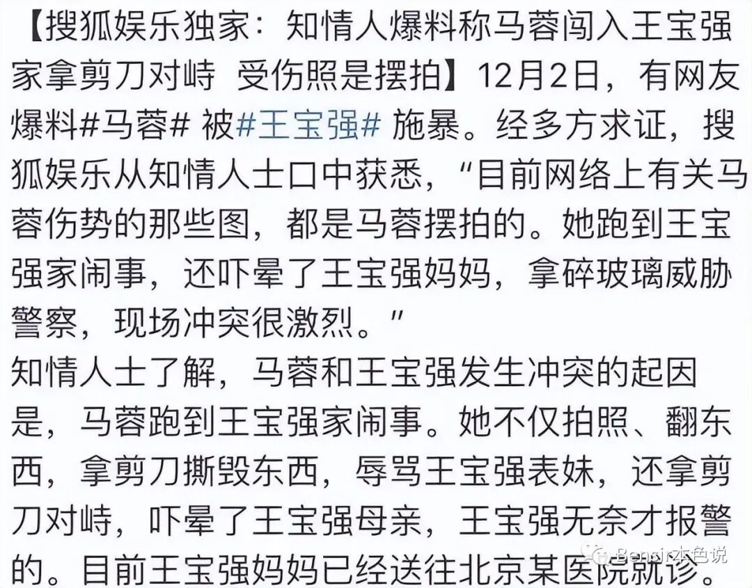 2018年12月,马蓉和妈妈带着剪刀到王宝强家闹事,还毁掉了楼道监控。