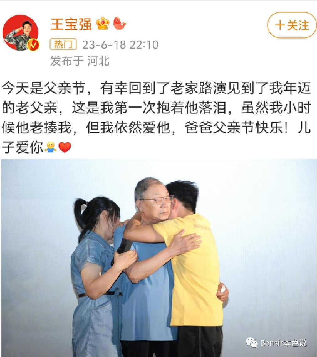 这个夏日夜晚,导演王宝强带着作品回到河北老家路演,他在社媒发布了一张和父亲姐姐的同框照,表白老父亲: