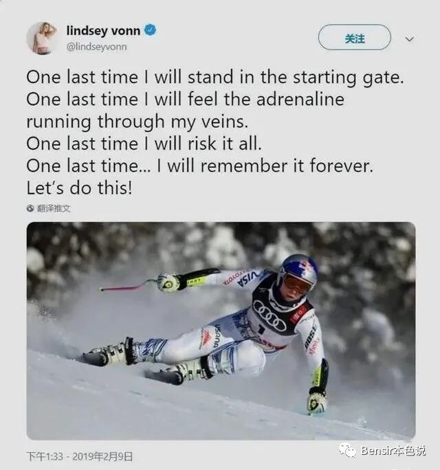 林赛沃恩说起来时满是遗憾,她说她在训练时早就挑战过很多男性运动员,也曾让他们输到哭着回家找妈妈。