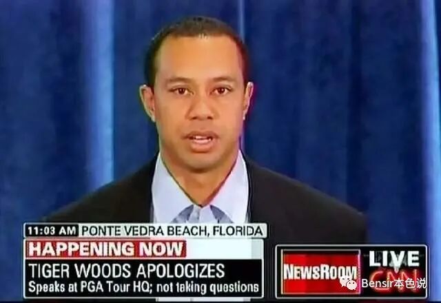 老虎伍兹在媒体上为自己的出轨向前妻和公众道歉,支支吾吾,窝窝囊囊。