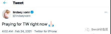 2021年,老虎伍兹再次车祸受伤,林赛沃恩还在社媒上公开为他祈祷。