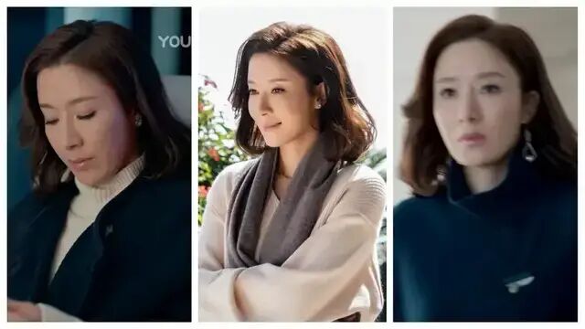发型也是中长发,衣着偏爱比较职场的知性风,搭配一些女人味十足的蕾丝珍珠,显得温婉大方。
