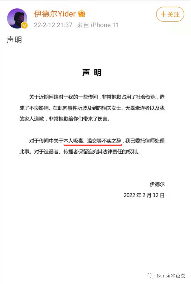 恋情曝光后,很多女网友出来锤伊德尔,说他滥交,开多人运动爬梯,甚至吸D。伊德尔方发了个声明,这事儿就算翻篇了。