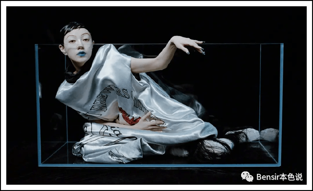 这个妆面,这个造型,浴缸里那张脚边披散的纷乱的长发,对不起,审美无能,甚至想高呼:恶灵退散!