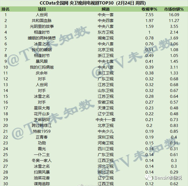 冬奥后开播的三部待播剧,《我们的婚姻》、《婚姻的两种猜想》、《相逢时节》,竟然是佟大为白百何的《我们的婚姻》收视垫底。