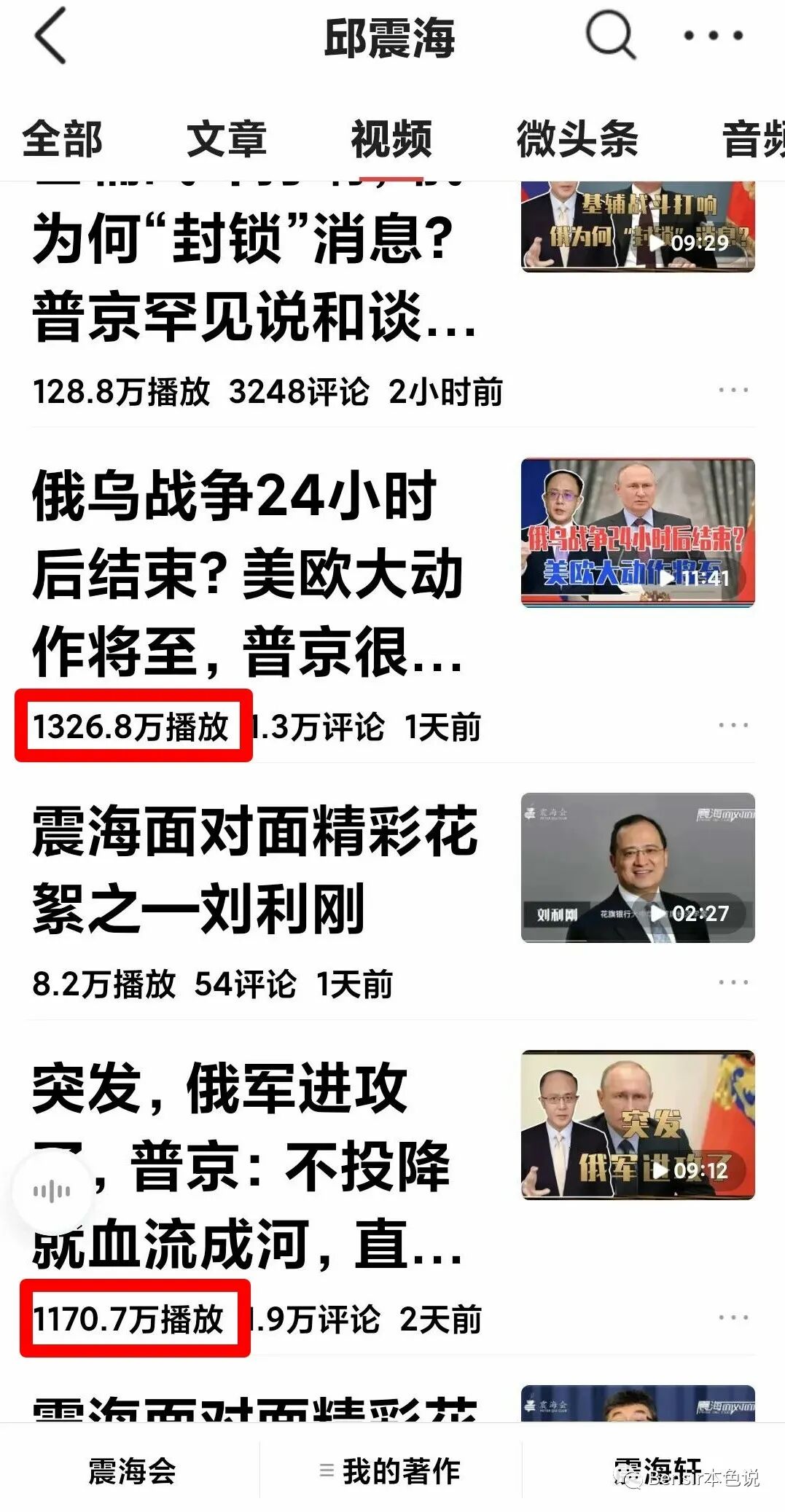 随着局势不断产生变化,邱震海又连续在视频或节目中紧扣时局做出精准分析与判断,不断产生超千万播放量的视频代表了网友对他的赞许。
