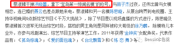 蔡淑臻20岁入行,因为外型迷人身材火爆,算是台湾模特圈绯闻永动机,富商高管,小开模特,已婚未婚,应有尽有。