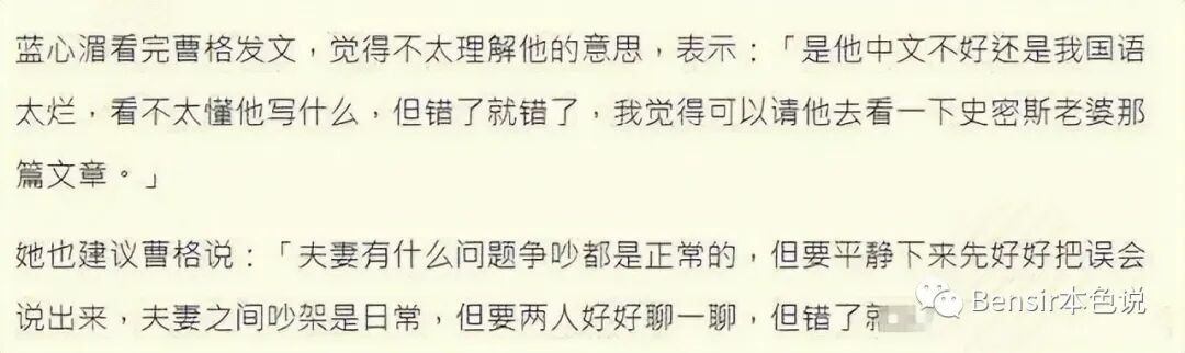 大家可能没注意到另一个新闻,曹格太太吴速玲在新闻发布当晚,赶到蓝心湄家中道歉。