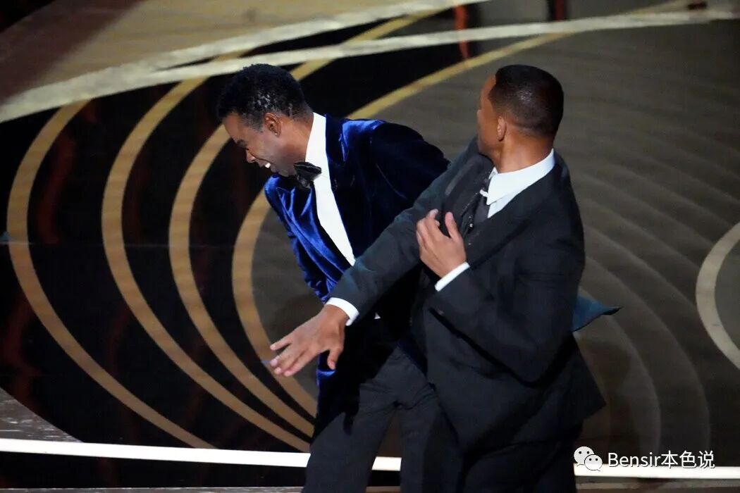 他健步走上舞台,以迅雷不及掩耳之势给了一脸懵逼的克里斯·洛克一巴掌,然后潇洒转身回到座位上。