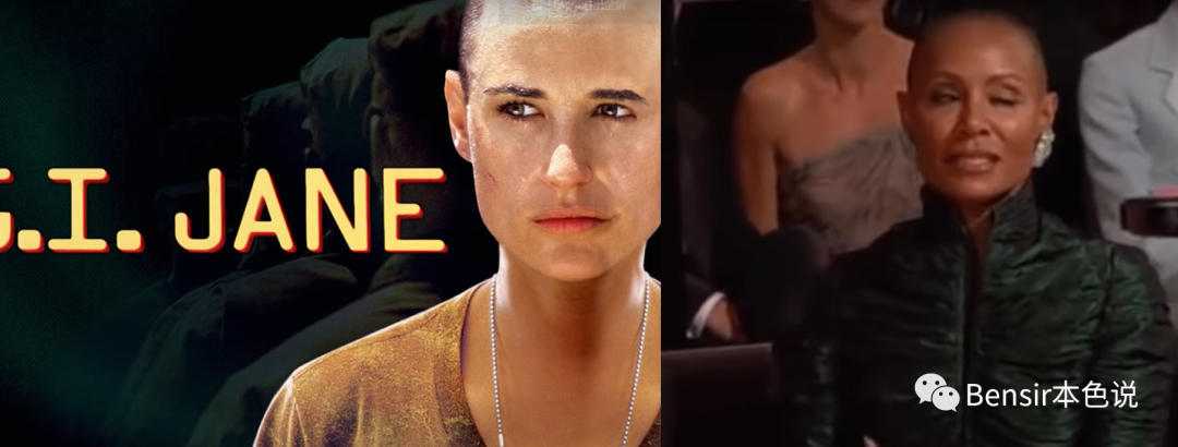 威尔·史密斯的妻子贾达因为脱发症而剃了光头,洛克是在用贾达在电影里的造型玩梗。