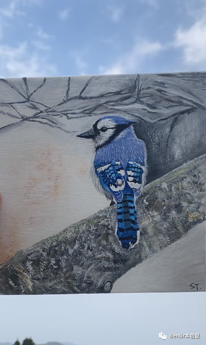 于是又上传一幅蓝色小鸟的图画,笔触细腻,非常逼真。