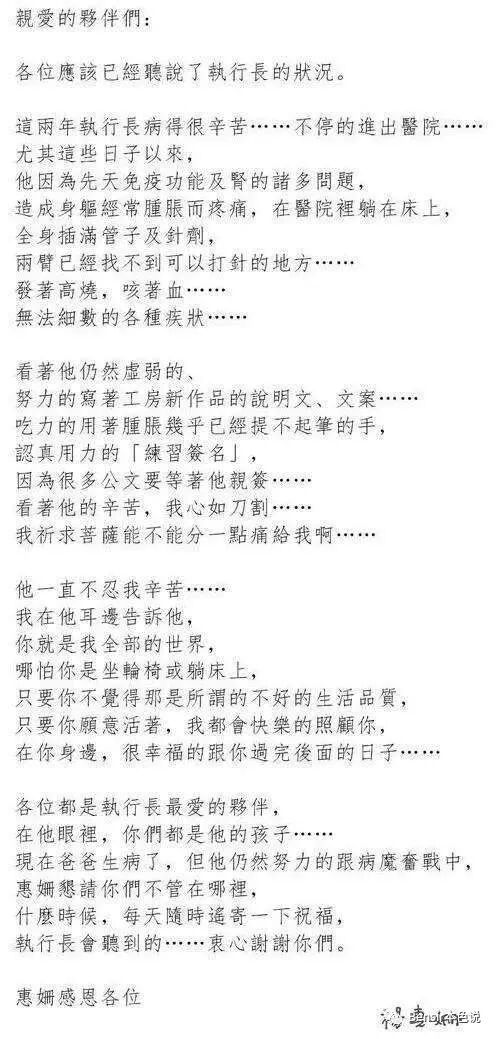 这个节目播出一年不到,和他恩爱多年的太太杨惠姗在社媒请大家为她至爱的先生张毅导演打气: