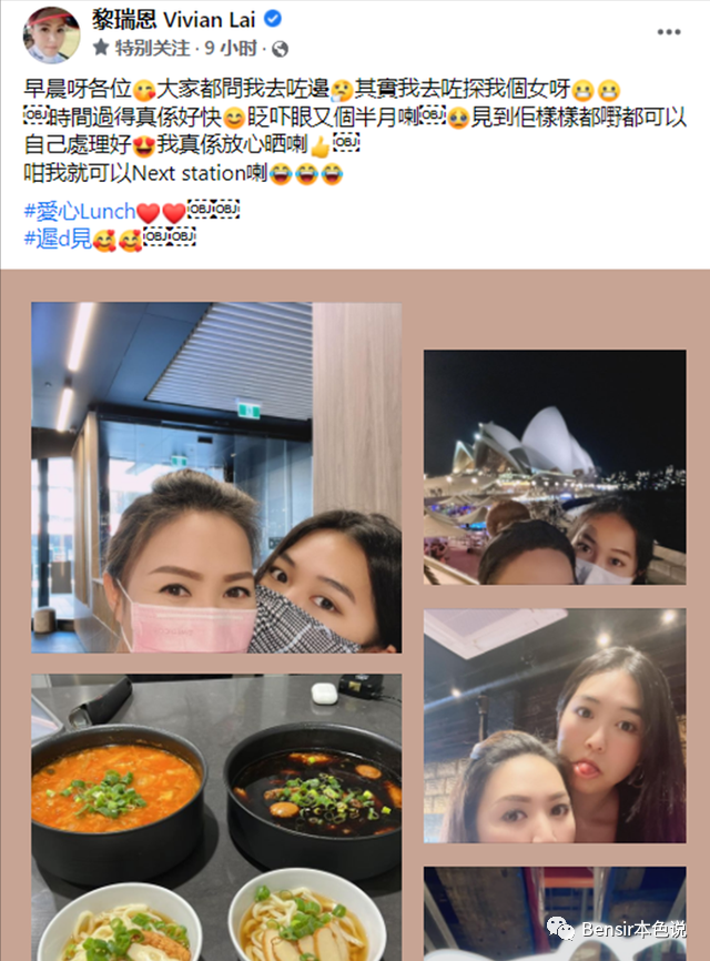 不久前,香港女星黎瑞恩在社媒上分享了一组近照,她配文: