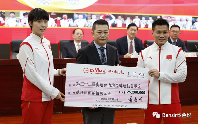 2021年,曾宪梓的第三个儿子,现任香港金利来集团有限公司副主席兼行政总裁曾智明,向金牌运动员代表吕小军、杨浚瑄颁发2,520万港币奖金。
