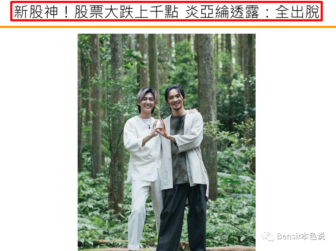 后来他一直征战股市,据说2020年因为疫情股市低迷时,炎亚纶大胆抄底台积电,又顺利逃顶,一顿操作猛如虎,身家又添几个零。