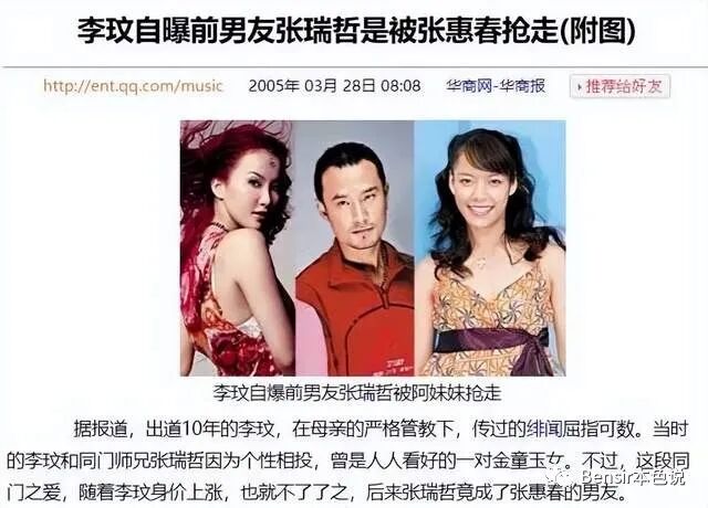 李玟和张瑞哲的关系破裂则是她自己2005年爆出。
