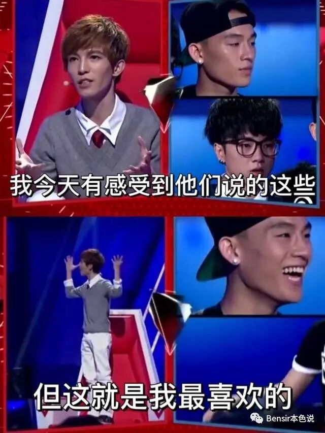 郭敬明不甘示弱,为了极致表达对华晨宇的欣赏,140的小身板站到了椅子上。