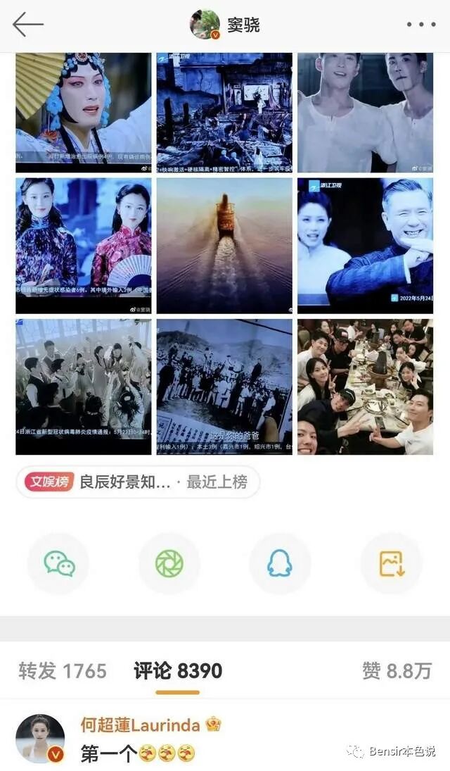 窦骁的微博一发,何超莲第一个冲出来评论,抢了沙发坐稳了热一。