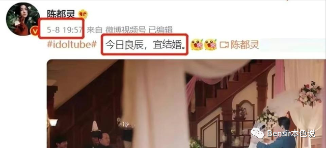 比如剧里的男女主大婚那天,陈都灵就发文:“今日良辰,宜结婚。”