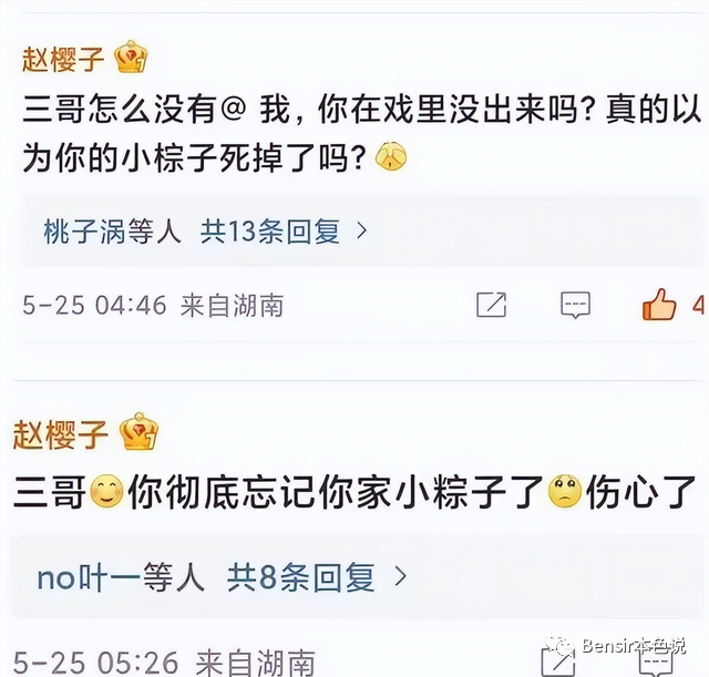 急得赵樱子在评论里连发两条,“三哥,你忘了你的小粽子了吗?”