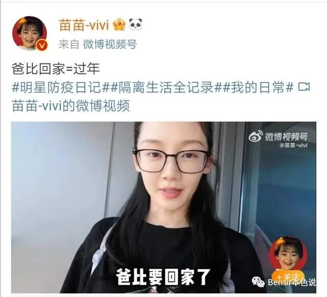 和《奔跑吧》官微呼应的是苗苗的vlog,她用了“爸爸回家=过年”这样的标题。