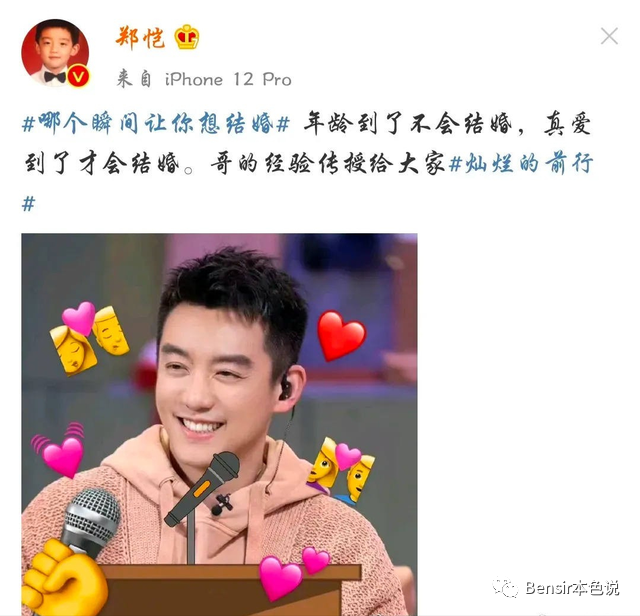 不久前他有感而发,“年龄到了不会结婚,真爱到了才会结婚。”