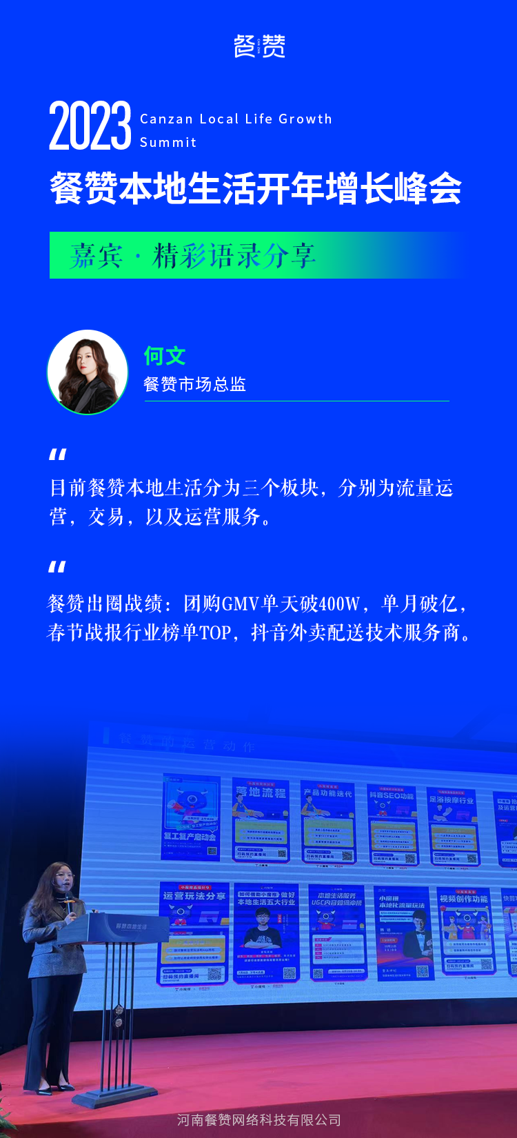 为加强与合作伙伴之间的交流与联系,共话本地生活行业的多种可能,携手创造更多佳绩,实现共赢,以【万物苏,蓄势发】为主题的餐赞本地生活2023开年增长峰会,于2023年2月20日-2月21日在郑州圆满举办!