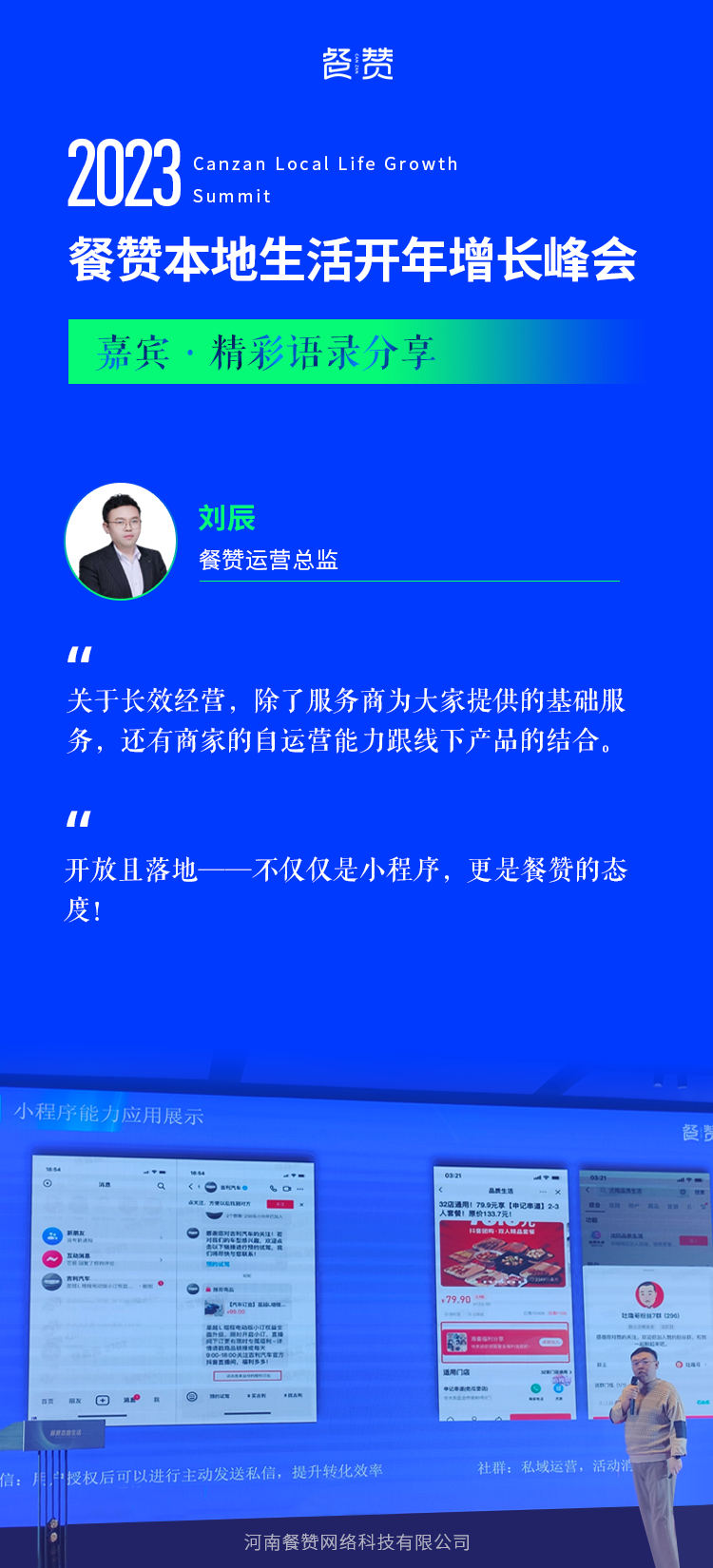 餐赞本地生活2023开年增长峰会,让运营者更加了解本地生活,更加了解餐赞生活服务解决方案,也更加清楚自己在这新一年的部署和方向,祝愿所有人在2023大放异彩,旗开得胜!