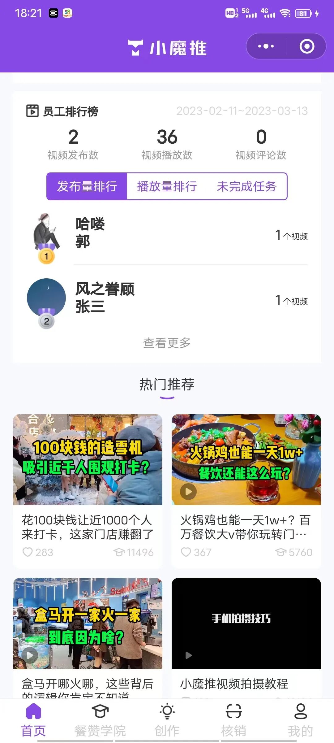 对商家来说,通过小魔推员工矩阵管理功能,能够对员工的短视频账号进行统一管理,统计员工发视频情况,多种管理查看方式,提高员工执行力,从而提高门店视频曝光量,提高订单转化量。