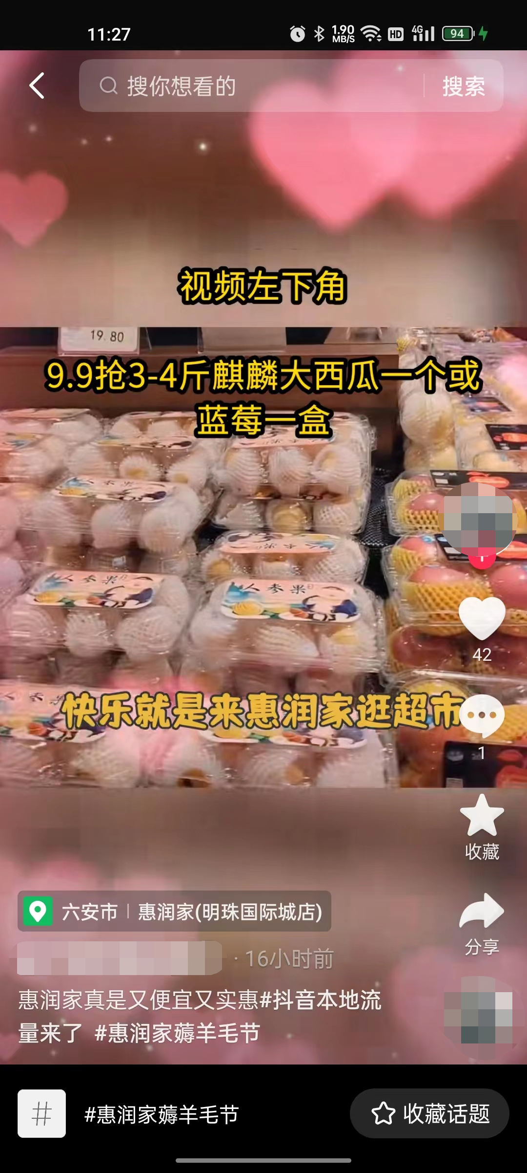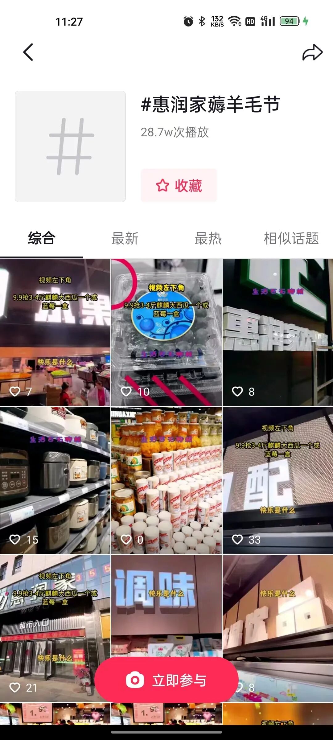 【惠润家(明珠国际城店)】本次用小魔推做活动,主要由顾客和超市员工进行视频的发布宣传。