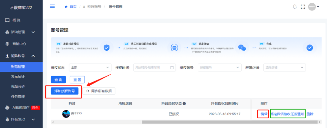 绑定后的短视频账号就可以进行统一管理,搭建品牌矩阵流量。