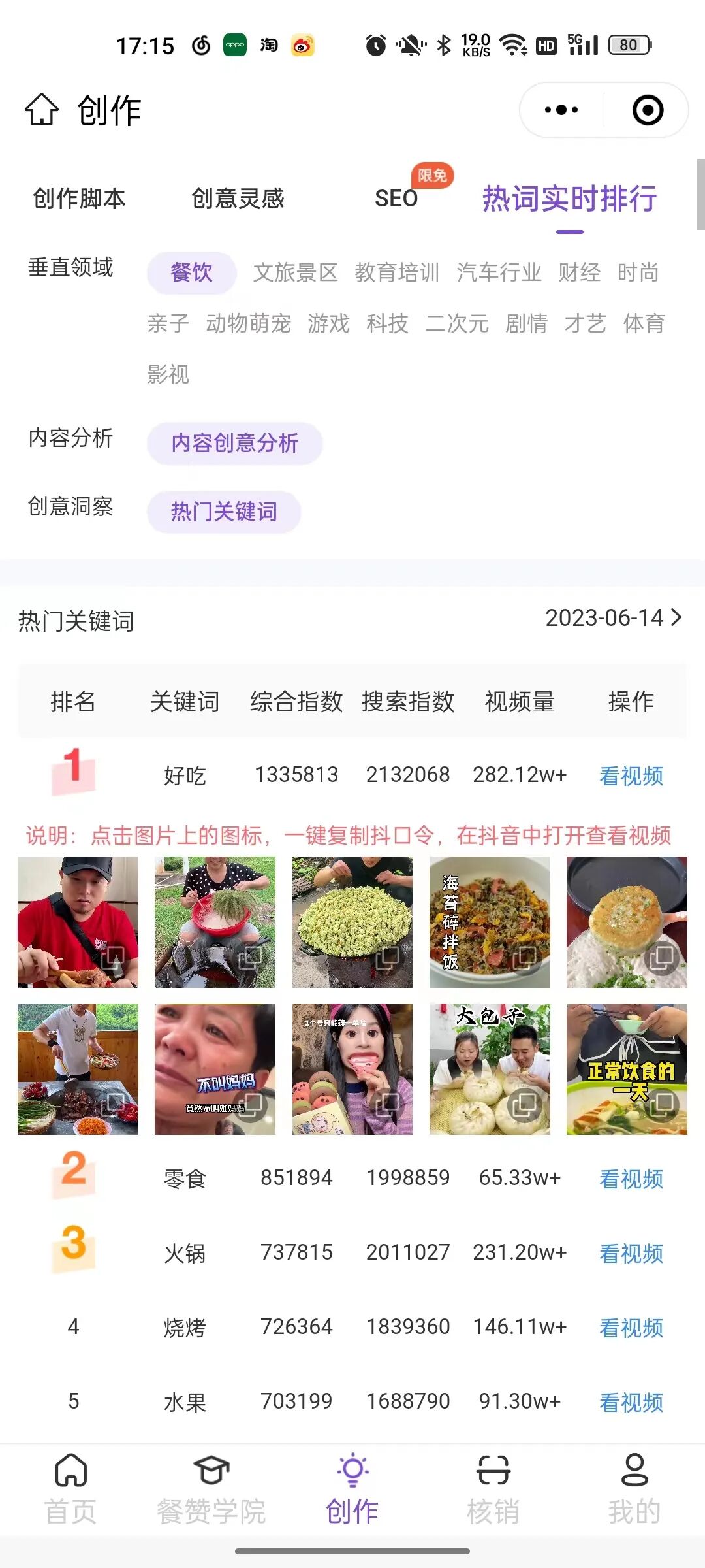 热词排行可展示垂类行业热门关键词,包括对应的具体分析和top10的热门视频,使用热词,提高视频排名,获得更广泛曝光!