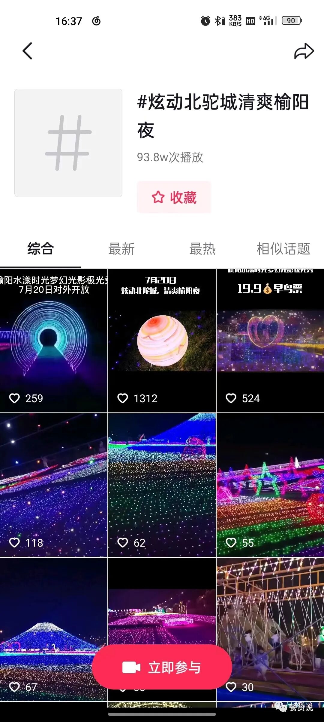 创建话题#榆阳水漾时光梦幻光影极光秀#炫动北驼城清爽榆阳夜