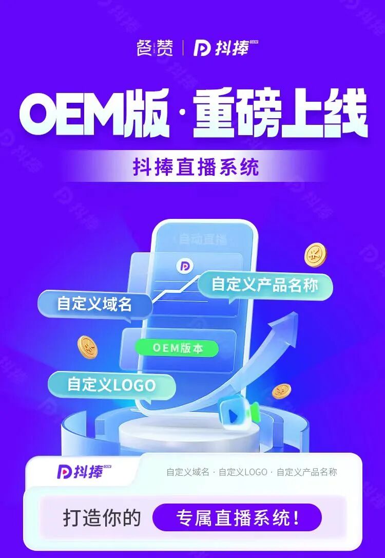 购买抖捧OEM版本的从业者,可以自定义产品名称、自定义域名、自定义logo,从而打造自己的专属直播系统,提高品牌影响力,增强与商家间的粘性,提升成交率。