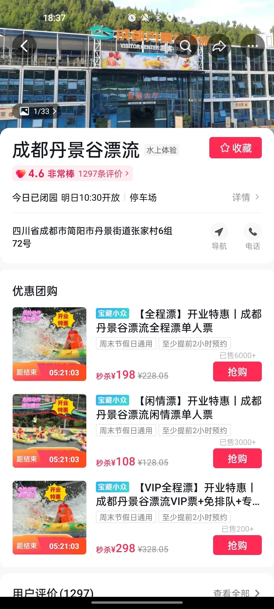 【成都丹景谷漂流】开业前期,只用了小魔推做曝光引流活动,景区也上架了门票的团购。